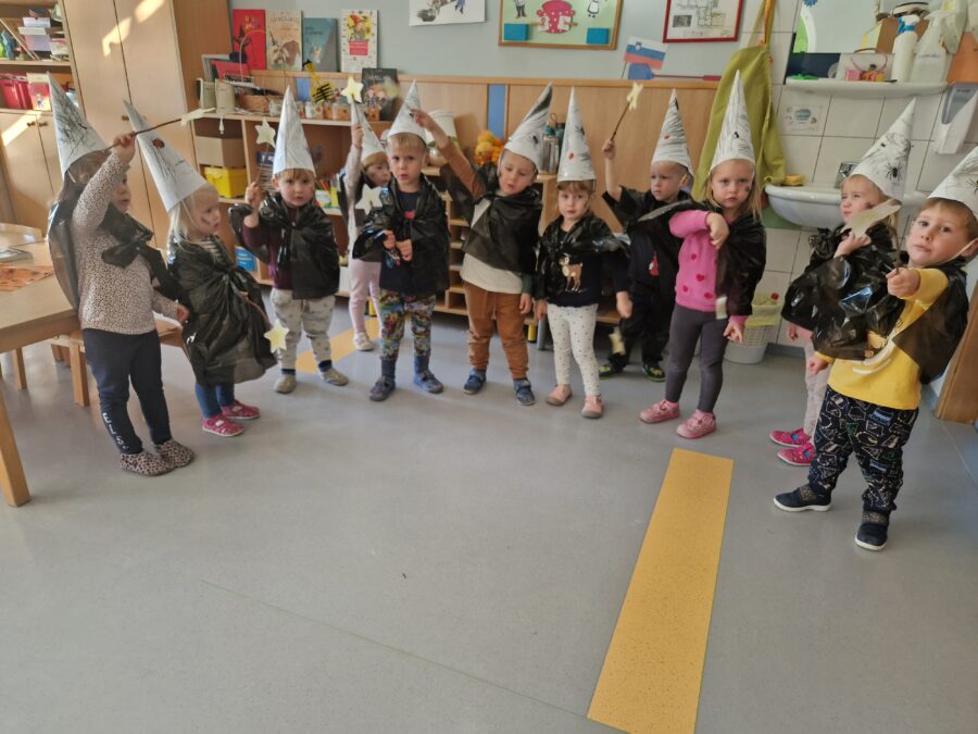 Tudi v vrtcu smo ves čas priča raznim »čarovnijam« – med igro se hitro spreminjamo v princeske, kraljeviče, policiste, gasilce, živali in še mnogo več. Zato z veseljem en teden v oktobru namenimo prav čarovnicam – ne tistim zlobnim, ampak seveda prijaznim, ki jih je prav tako veliko.