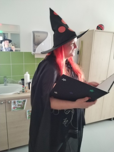 Prek različne otroške literature smo spoznavali še druge čarovnice, čarali skozi ples in seveda veliko ustvarjali. Vrhunec dogajanja pa je bila naša skupna čarovniška zabava, na kateri ni manjkalo plesa, čarobne igrivosti in – seveda – slastnega, dišečega napoja.