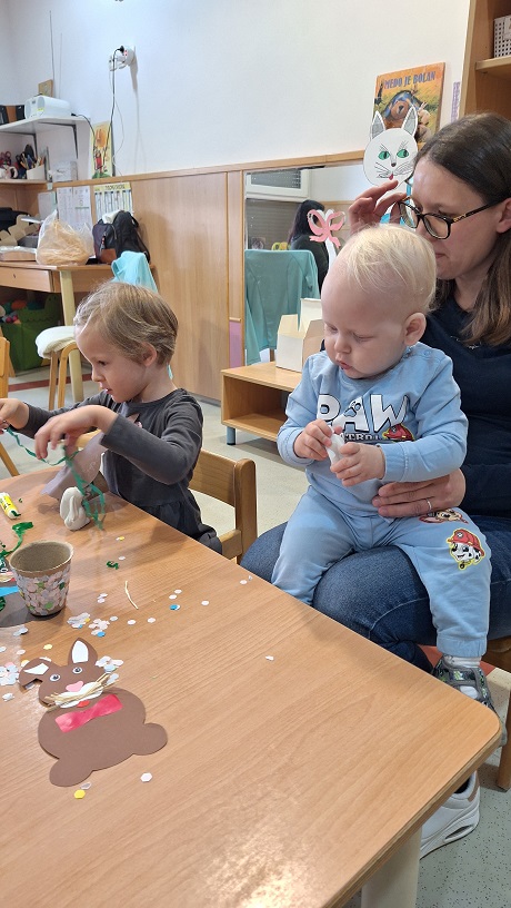 S skupino otrok (od 1 do 2 leti), smo v minulih dneh z veliko radovednosti, topline in veselja odkrivali čarobnost pomladi ter se pripravljali na praznik velike noči. Preko skrbno izbranih dejavnosti smo sledili ciljem spodbujanja otrokovega celostnega razvoja – razvijali smo govor in besedni zaklad, krepili fino motoriko, spodbujali zaznavanje z vsemi čutili, ustvarjalnost, samostojnost ter veselje do raziskovanja sveta okoli sebe.