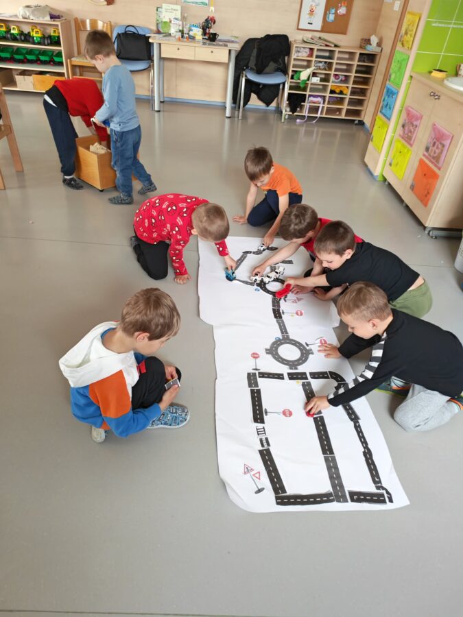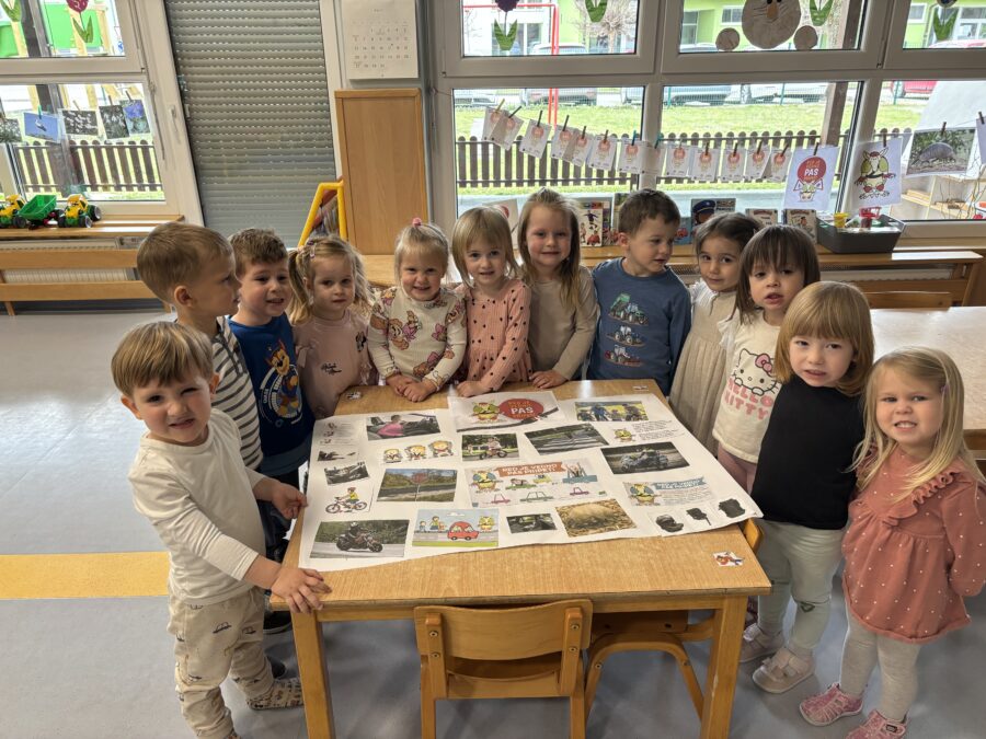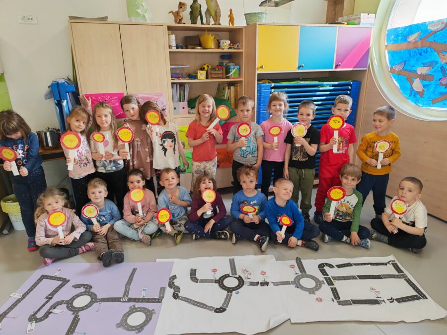 V mesecu aprilu smo izvedli načrtovane dejavnosti s področja prometne varnosti. Otroci so se seznanjali s prometnimi pravili, pomenom varnega vedenja v prometu, prepoznavanjem osnovnih prometnih znakov ter ustrezno uporabo otroških varnostnih sedežev. Izdelali smo tudi tematski plakat.